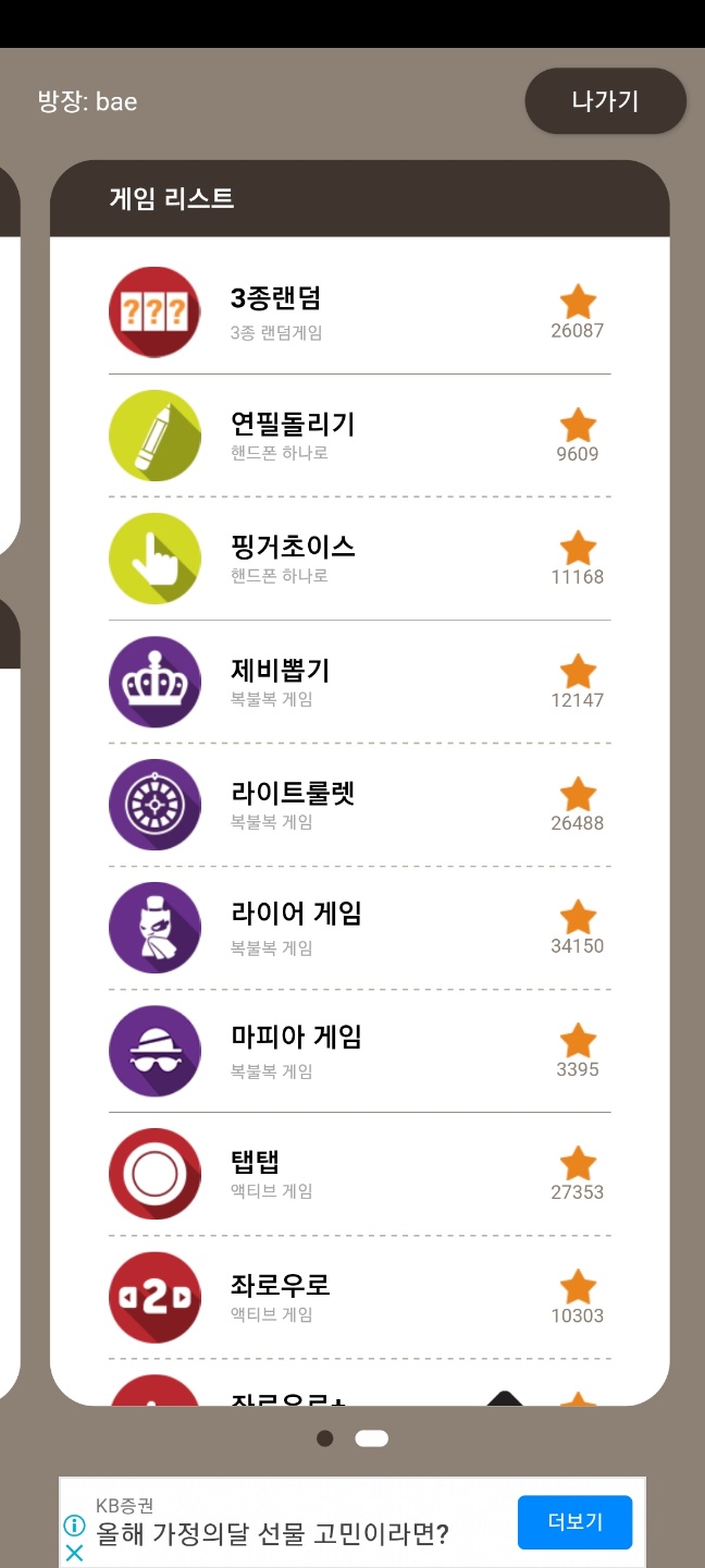 게임 종류가 상당히 많죠!? 심리싸움과 눈치싸움을 겸비한 마피아게임이나 라이어게임도 상당히 재밌죠!?^^